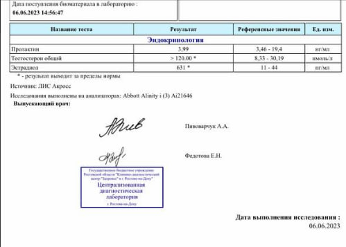 анализы через 8часов после инъекции 100мг тест пропионат PL.