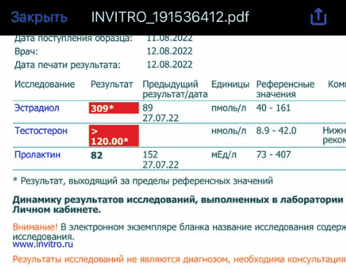 Анастрозол 0.5 мг в день, пересдача через 14 дней.